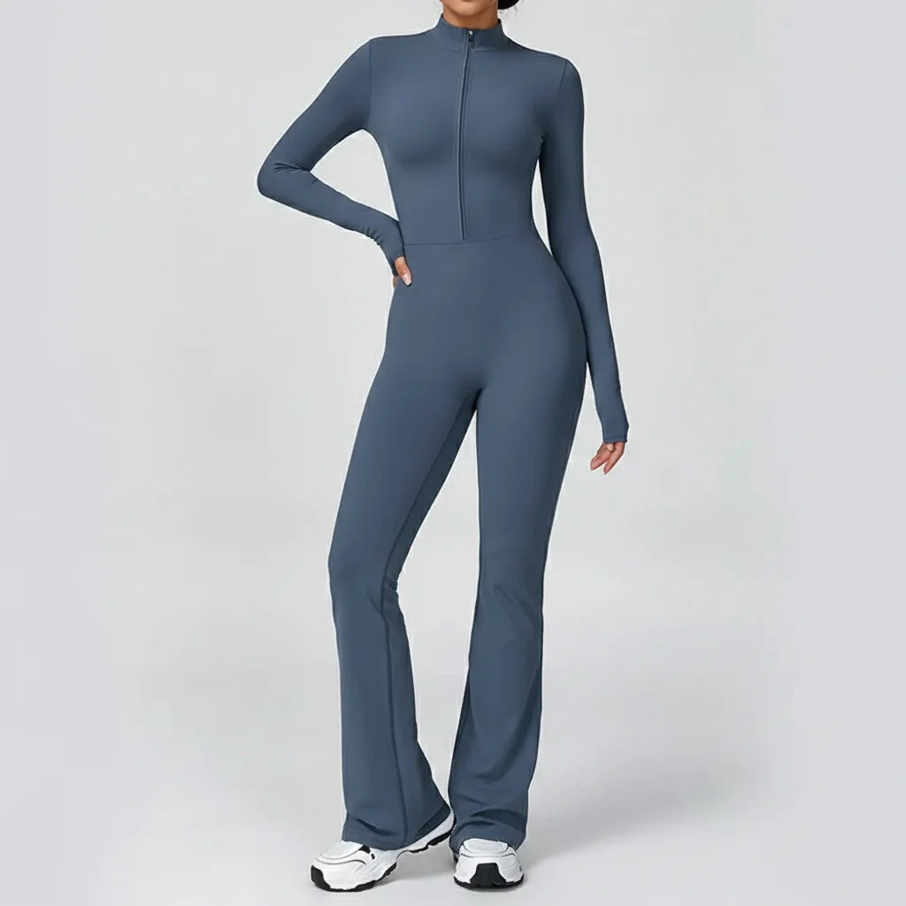 Embrace the synergy of sleek style and dynamic performance. This form-fitting jumpsuit sculpts your silhouette, allowing effortless movement and fierce confidence in every pose.